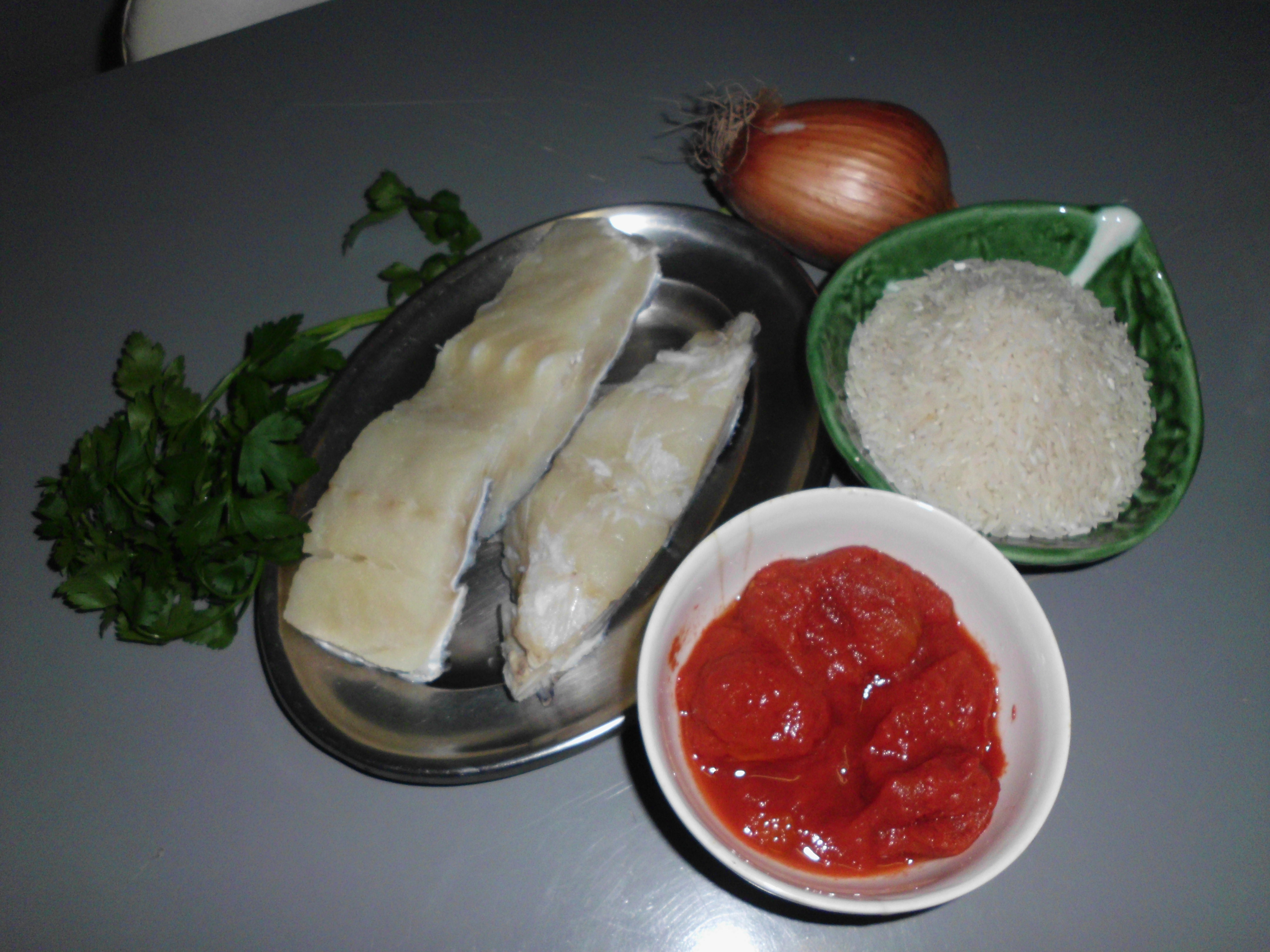 Num tacho aqueça o azeite, refogue a cebola, o alho e o tomate, mexa, junte a água, deixe cozer em lume médio cerca de 10 minutos.