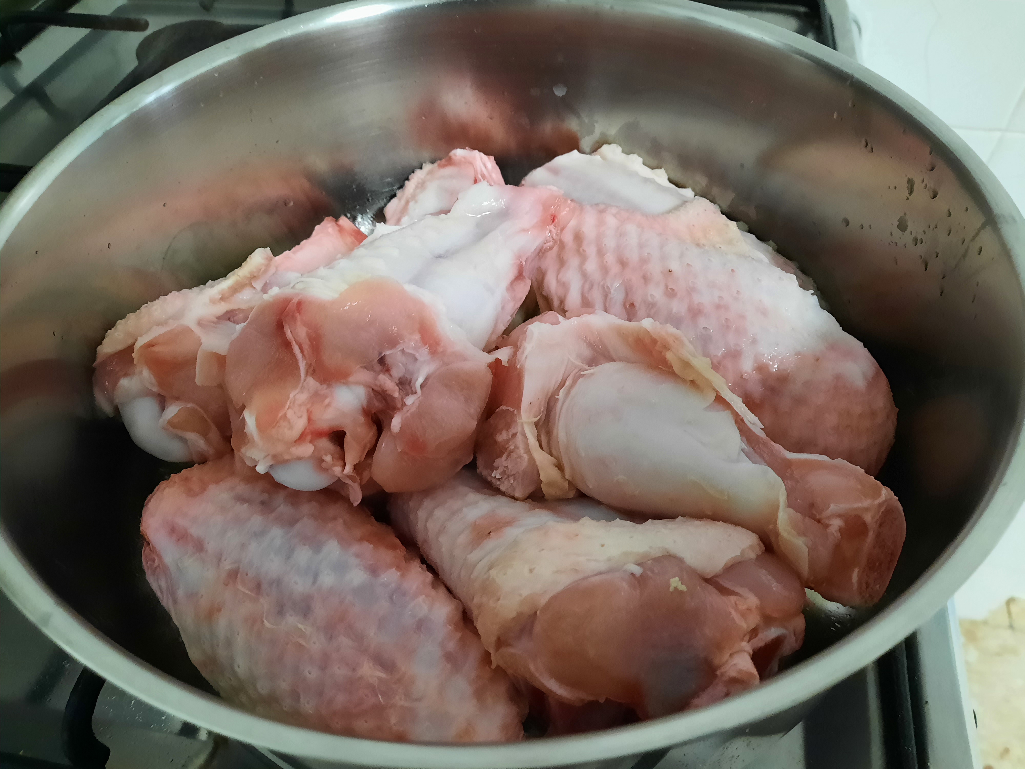 Comece por limpar e lavar as asas, corte as asas pelas juntas.