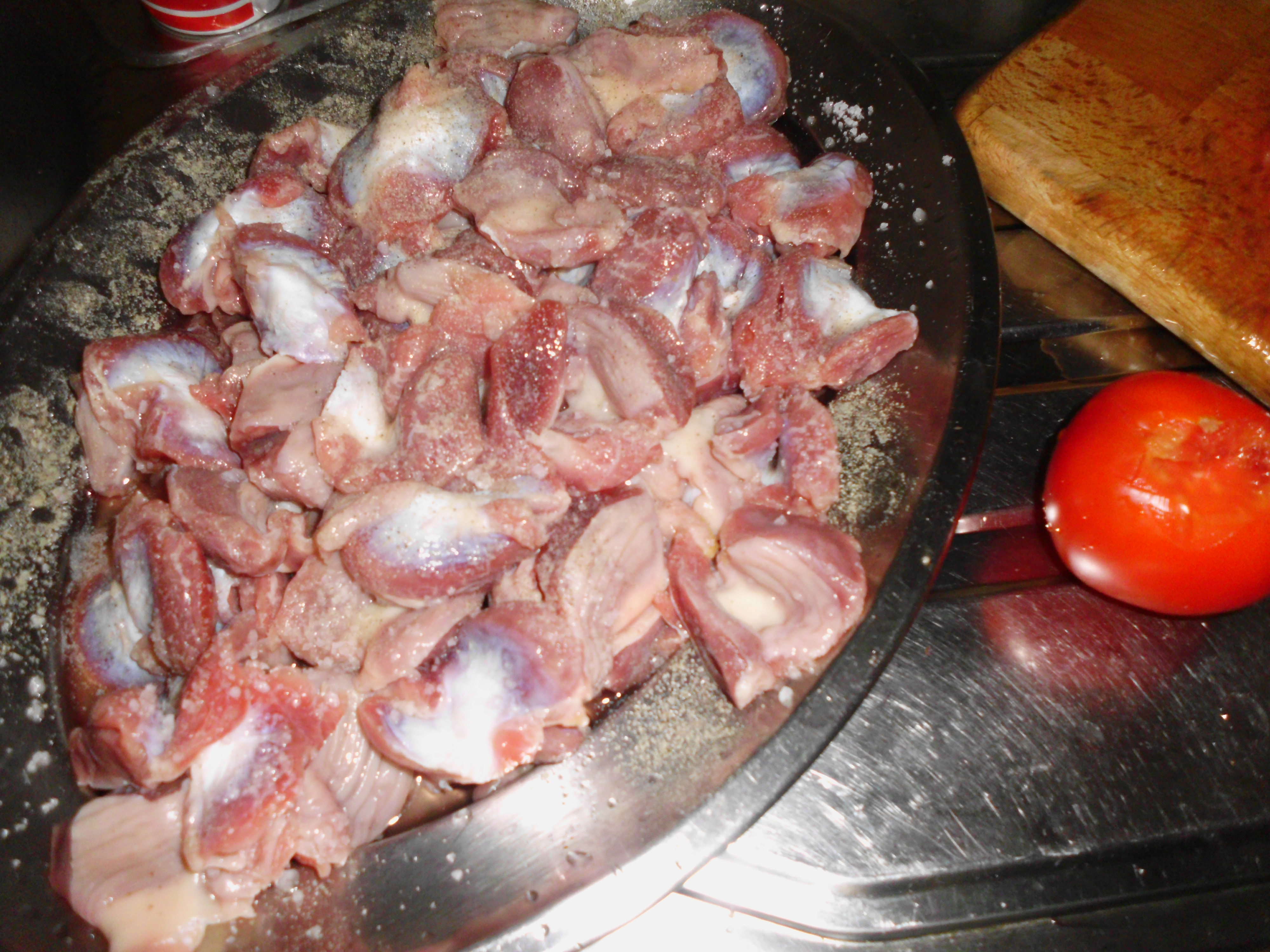 Comece por lavar muito bem os pipis, retire as peles e gorduras das moelas, retire as unhas das patas, limpe os pescoços de gorduras.