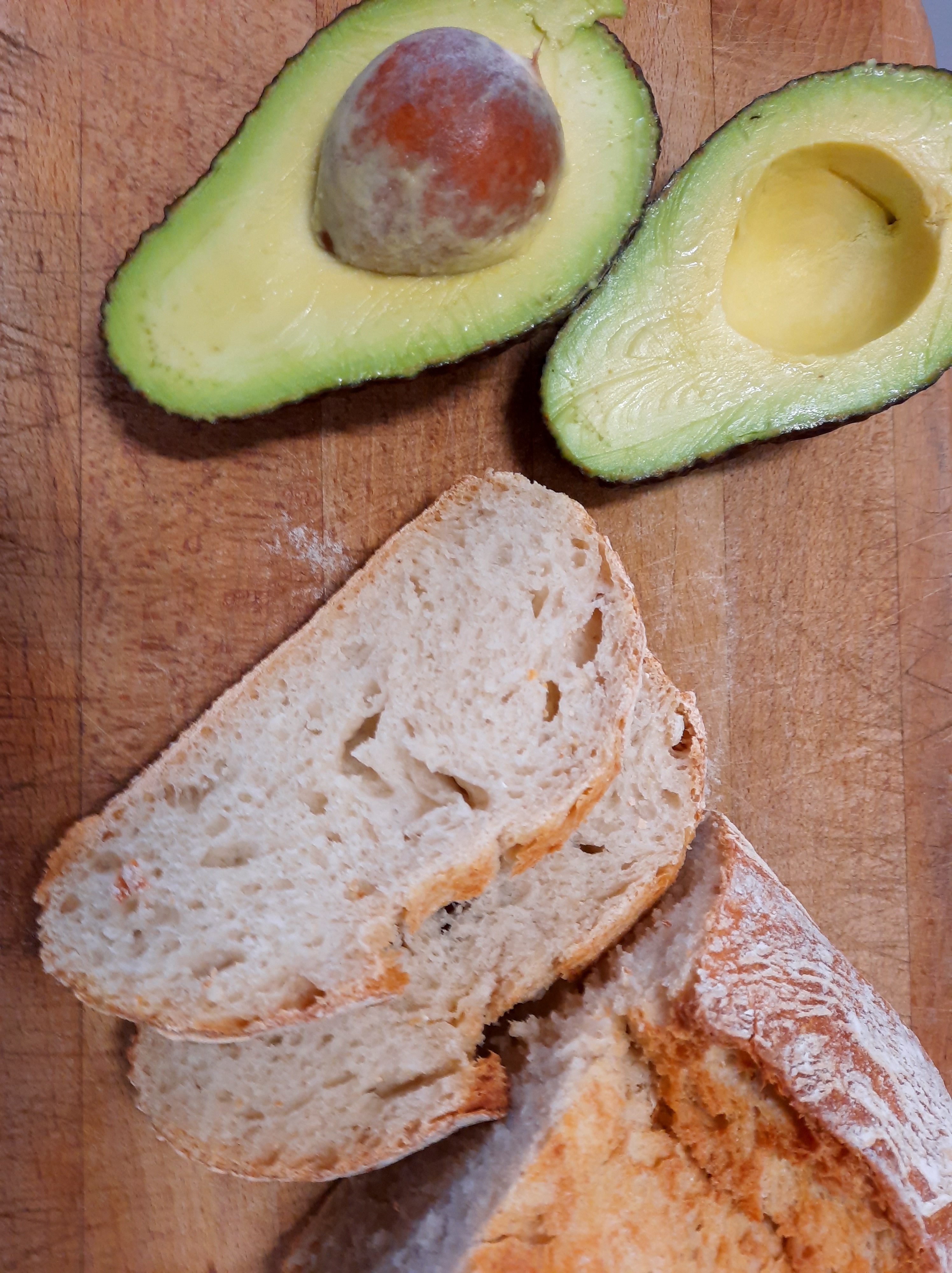 Descasque e fatie meio abacate, distribua por cima da fatia de pão, polvilhe com sal e pimenta, está pronta, delicie-se.