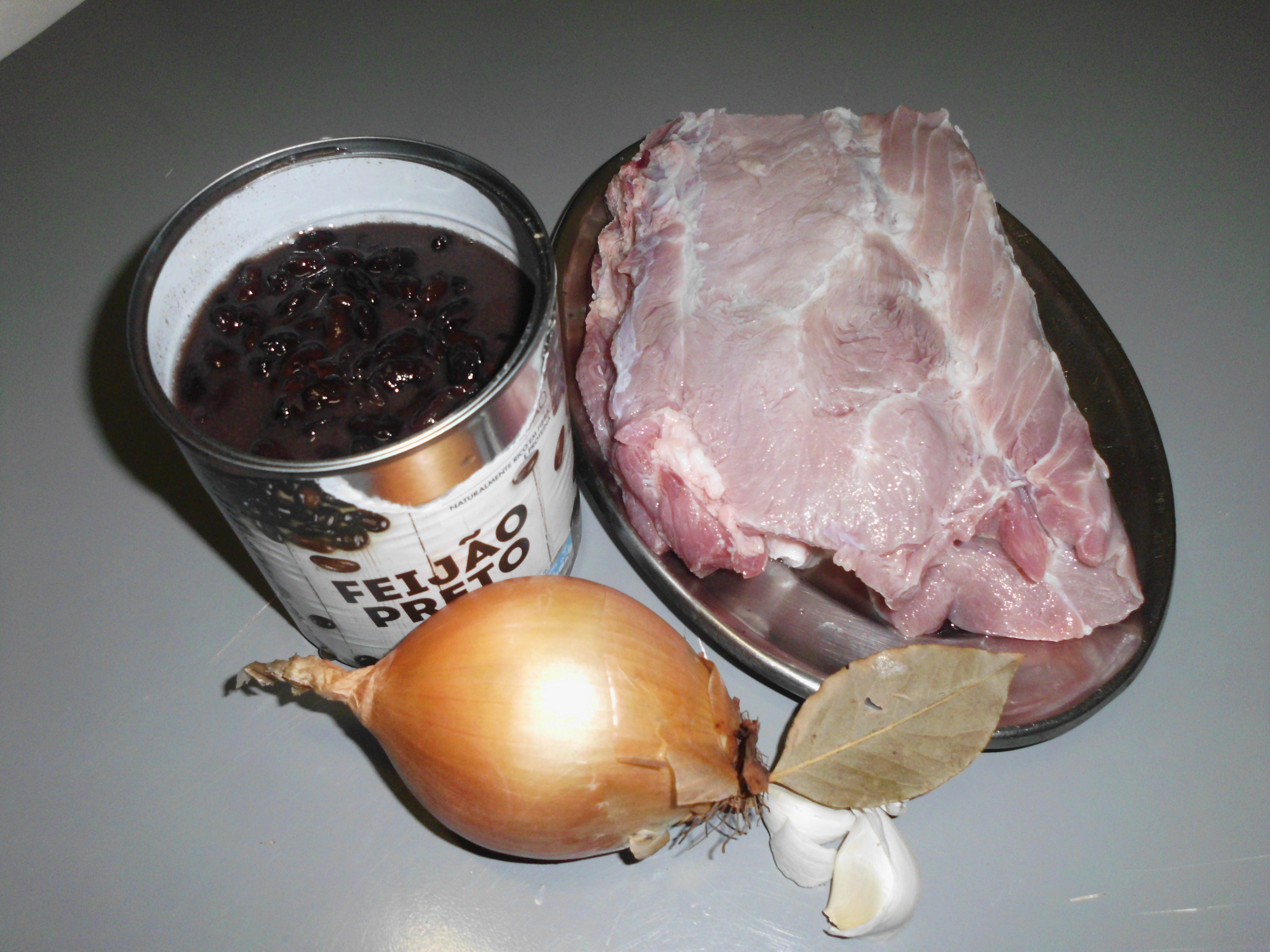 A seguir acrescente um pouco de água, a cebola picada, a folha de louro, os cominhos, o sal, mexa e tape o tacho e deixe cozer em lume brando.
