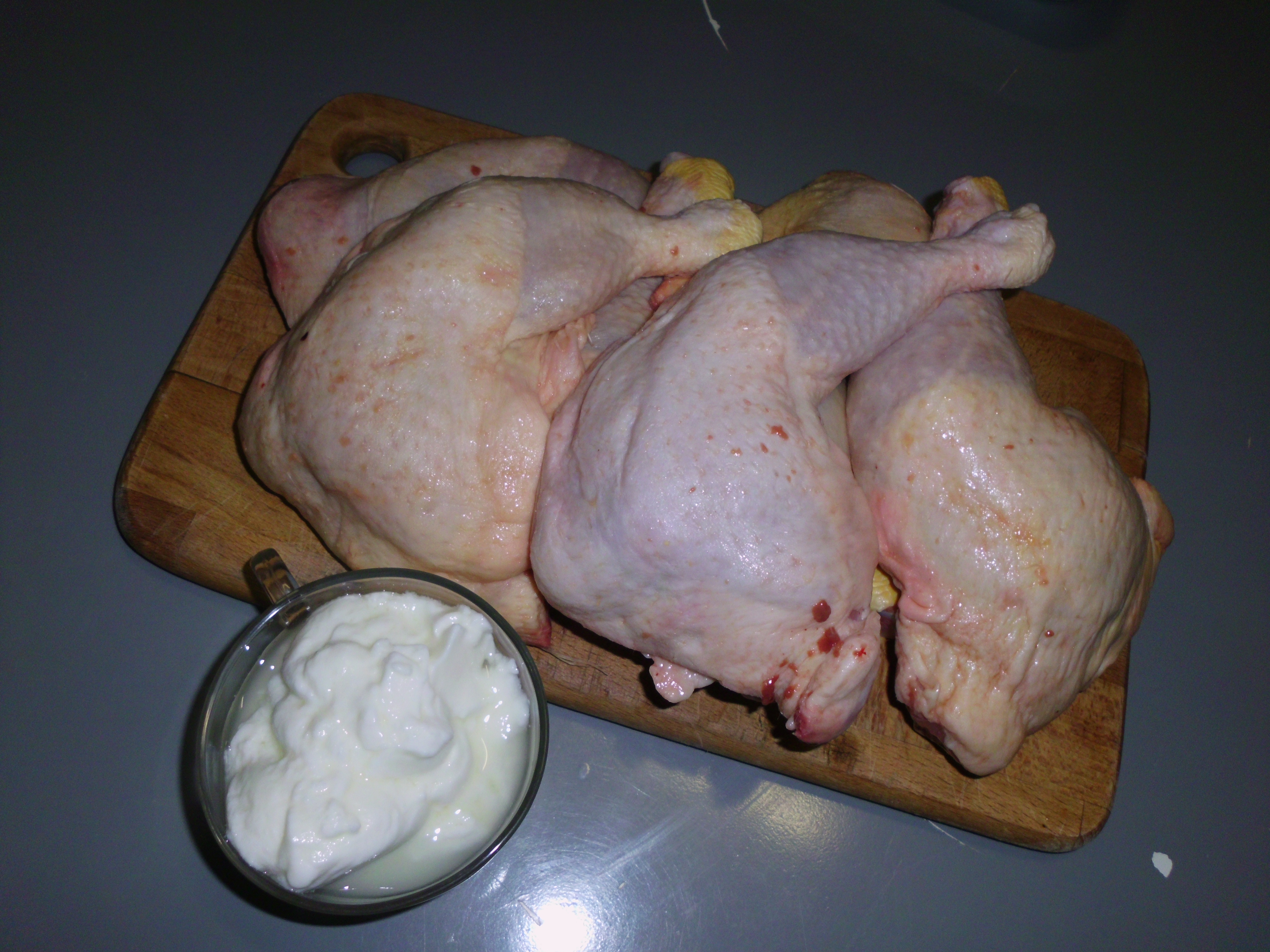 Comece por limpar e lavar as pernas de frango.