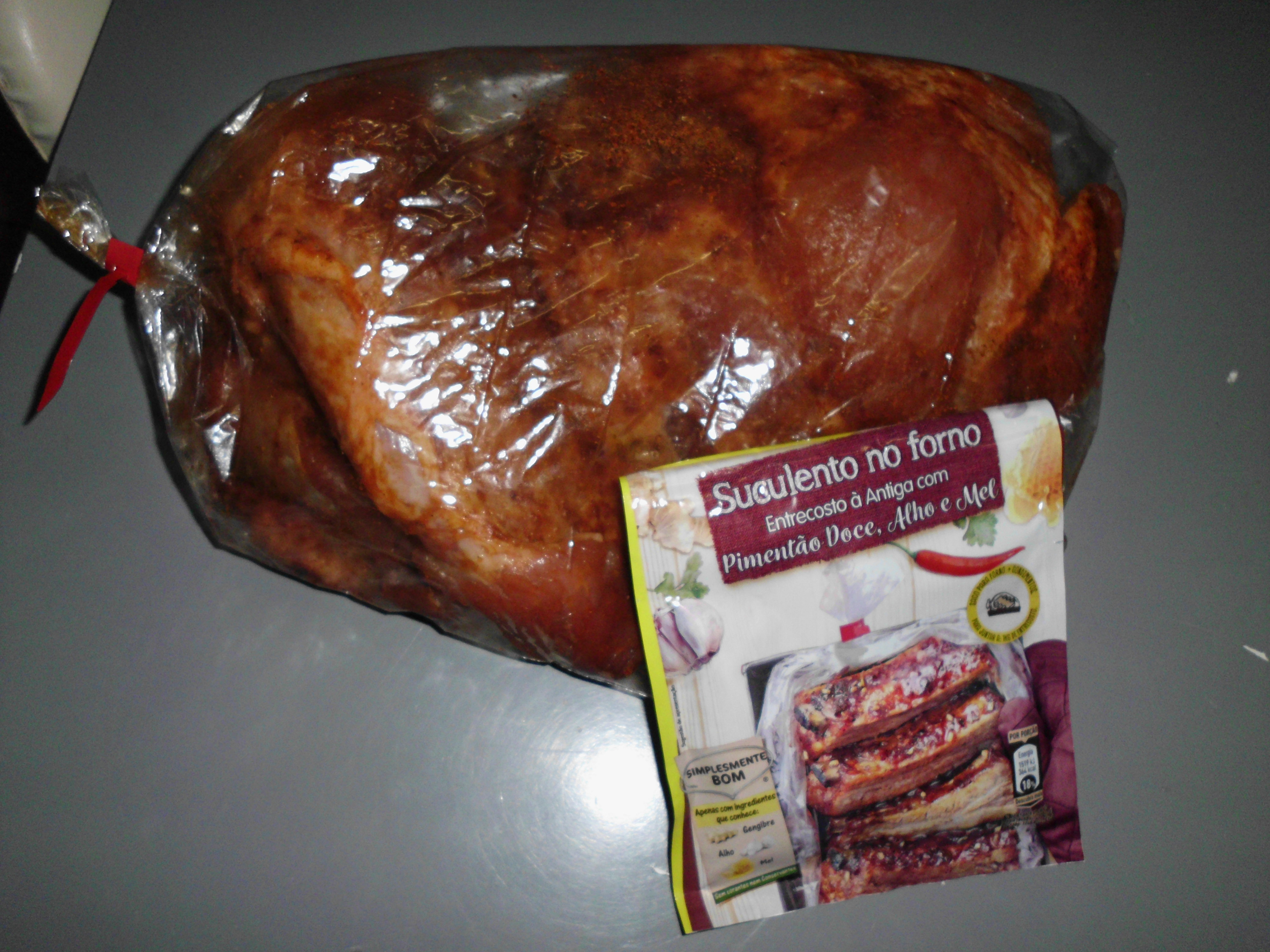 Pré-aqueça o forno a 180ºC. Lave a carne, escorra e ponha numa travessa. Esfregue a carne com o tempero que vem na embalagem, salpique um pouco de sal. Abra o saco que se encontra na parte superior da embalagem, coloque a carne dentro do saco, a seguir feche, o saco com o fecho que vem incluído.
